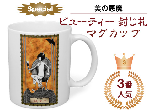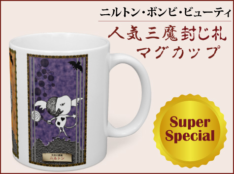 人気三魔封じ札をひとつにまとめたマグカップも用意した。