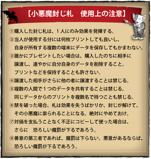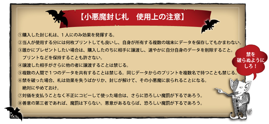 特別に「小悪魔封じ札」を安価で与えてしんぜよう。札をスマートフォンの壁紙にしたり、